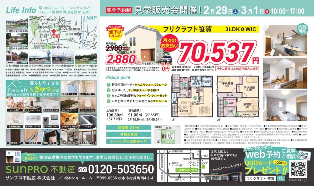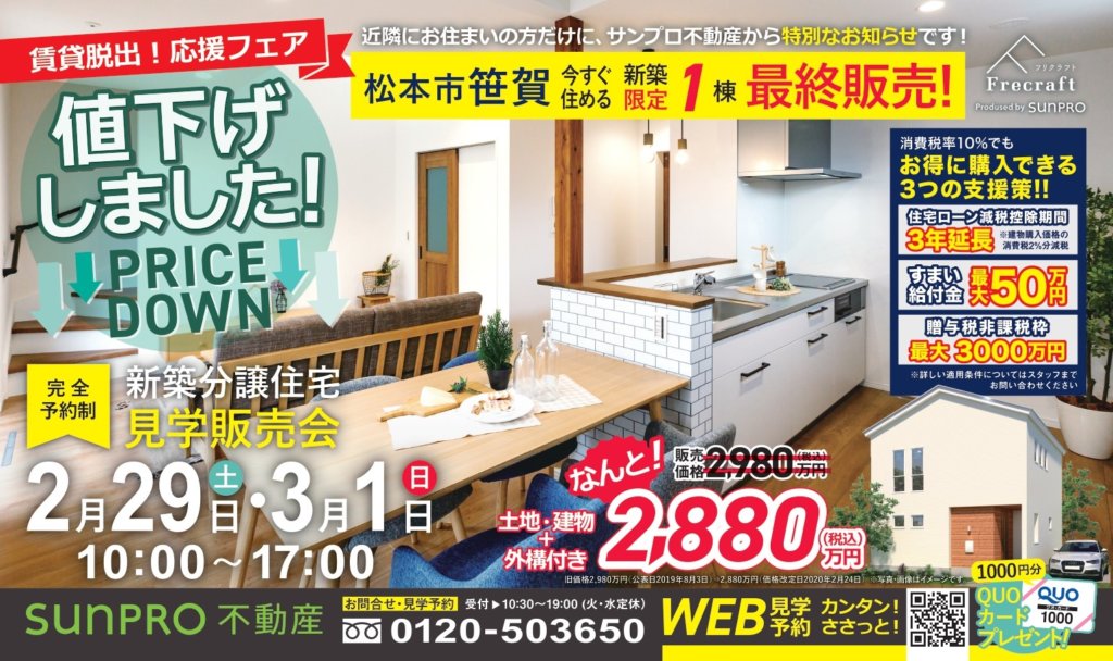 【終了しました】<2/29.土-3/1.日>松本市笹賀 見学即売会開催! | 分譲住宅 Frecraft(フリクラフト)松本市・塩尻市・安曇野市